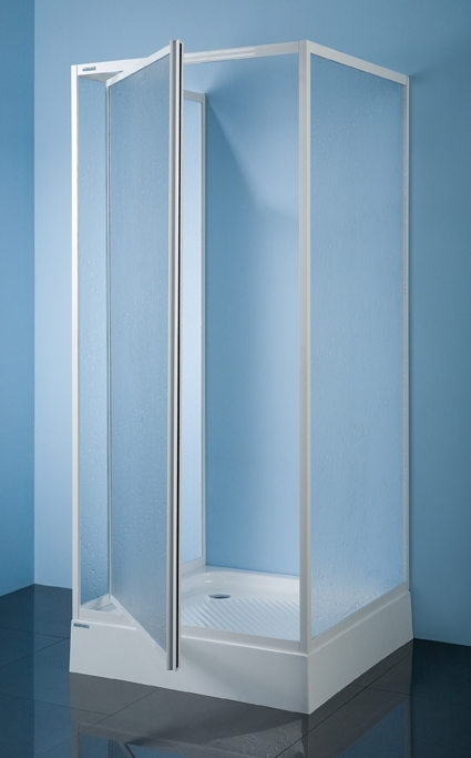 Rektangulært 3-vægs brusehjørne med udadgående dør.