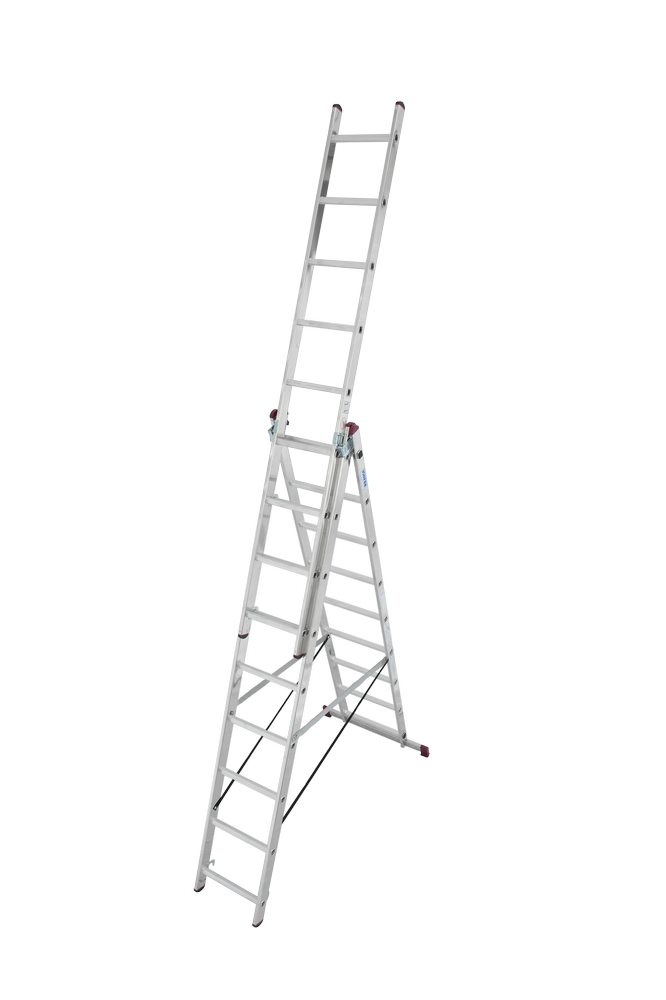 Du kan bruge denne multifunktionelle stige af aluminium til en lang række forskellige arbejdsopgaver. Du kan bruge stigen som en forlængerstige, enkeltstige eller trinstige. Stigen er opdelt i 3 dele, hvor alle dele har 9 trin og en længde på 2,50 meter, der kan give dig en arbejdshøjde op til ca. 6,20 meter og stigen har en vægtkapacitet på 150 kg. Stigen har stærk, skridsikker beskyttelse, der gør den stabil og sikker.