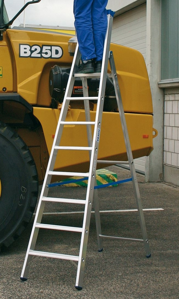 Denne kompakte aluminiumsstige er nyttig til en række indendørs og udendørs brug. Nem at opbevare, med en vægt på 10,5 kg og en vægtkapacitet på 150 kg. Stigen har 8 trin, med en længde på cirka 2,50 meter kan du få en arbejdshøjde på cirka 3,90 meter. Stigen er udstyret med stærk skridsikker beskyttelse, for sikker og stabil brug. Der er også en spandkrog til den professionelle bruger.