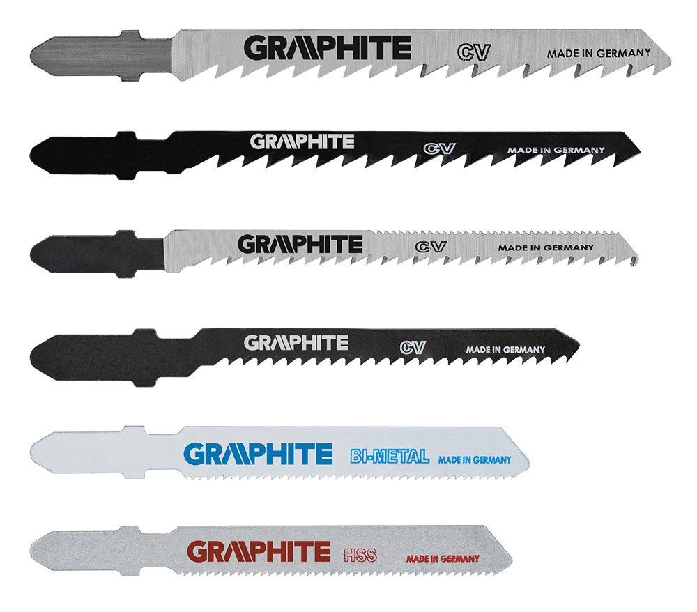 Sæt med stiksavsklinger med 6 klinger designet til at skære i forskellige materialer.