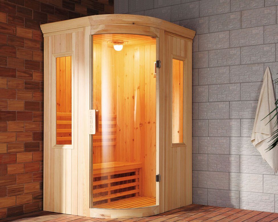 Moderne sauna fremstillet i fyrretræ. Saunapakken kommer komplet med saunavarmer og kontrolenhed. Kontrolenhed har USB-indgang til musikafspilning samt temperatur- og tidsregulerings-funktioner.
