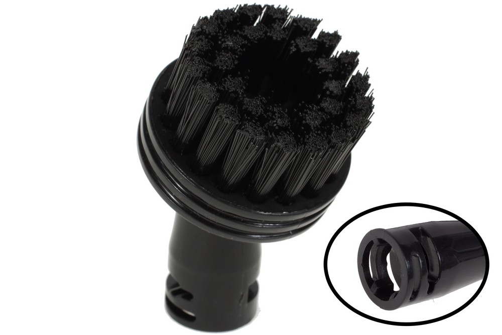 Børst med tykke nylonbørster. Børsten er velegnet til damprensning. Velegnet til rengøring af ovne, mikroovne, fliser, brusere og lignende.