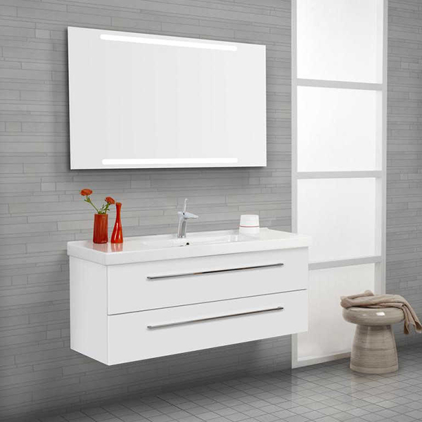Møbelpakke med håndvask, håndvaskskab og spejl. Skab lavet af MDF med soft-luk-hængsler.