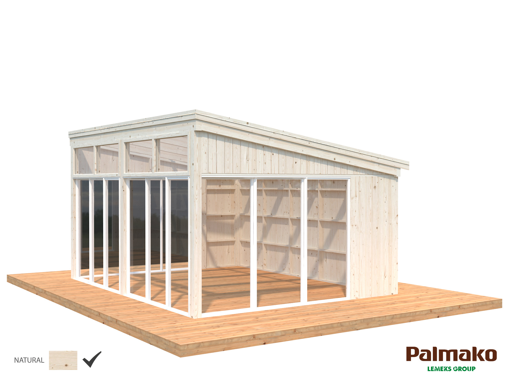 Tag og gulv består af 18 mm råplade, dette medfølger i sættet. Behandlede bæreliner til fundamentet er også inkluderet. Du skal selv lave fundamentet, materialer hertil medfølger ikke. Hvordan fundamentet er lavet afhænger af jordbundsforholdene, husets udseende og hvad du foretrækker. Der kan enten støbes en plade eller der kan anvendes sokkelbund på fx havefliser eller letklinkerblokke.