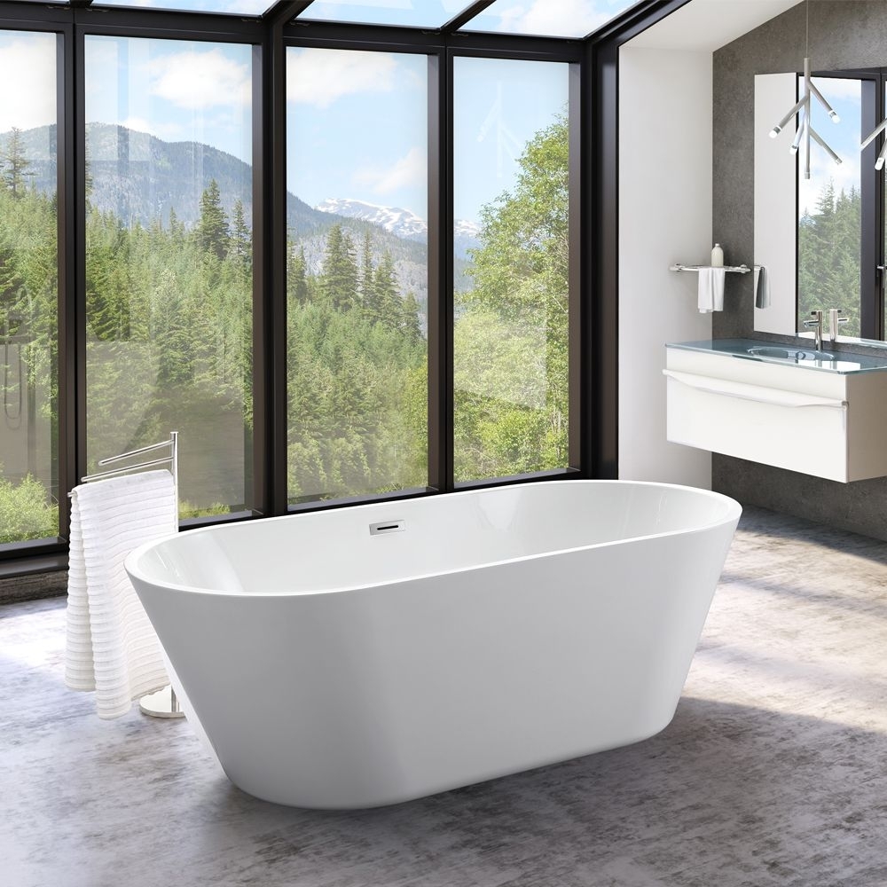 Et moderne fritstående badekar i ovalt design. Placer i midten af rummet for at skabe et naturligt centrum for dem, der virkelig sætter pris på deres badetid.