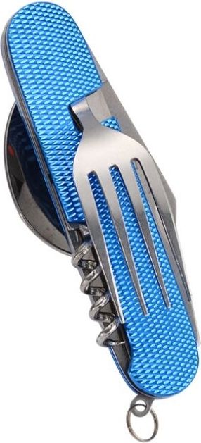 Et multiværktøj specialiseret til camping. Foldekniven indeholder gaffel, ske, kniv, proptrækker, flaskeåbner og synål. Nem at opbevare og kan redde dagen, hvis du er ude i naturen. Et redskab du må have!