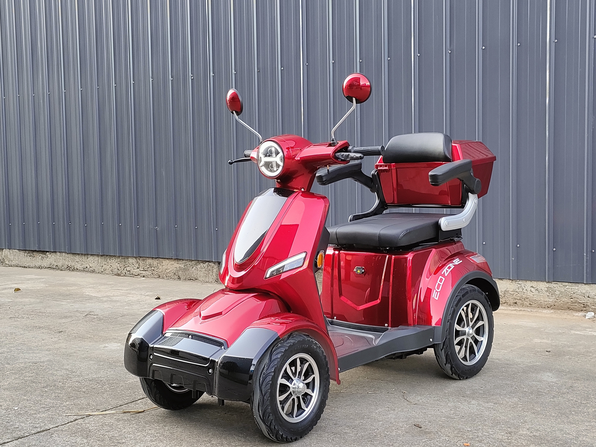 Denne elektriske gå-scooter kombinerer både stil og funktionalitet med sit sorte og røde design. den er udstyret med et rummeligt og komfortabelt sæde og også med generøse opbevaringspladser. Hvilket gør denne scooter til den ideelle til daglige ærinder og udflugter. Det klare LCD-display viser vigtig information såsom hastighed, kilometertal, indikatorlys og batteristatus, hvilket letter overvågningen under kørslen.