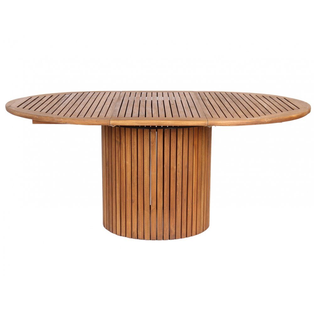 Rundt udtrækkeligt spisebord i teak Ø115+40 cm udendørs