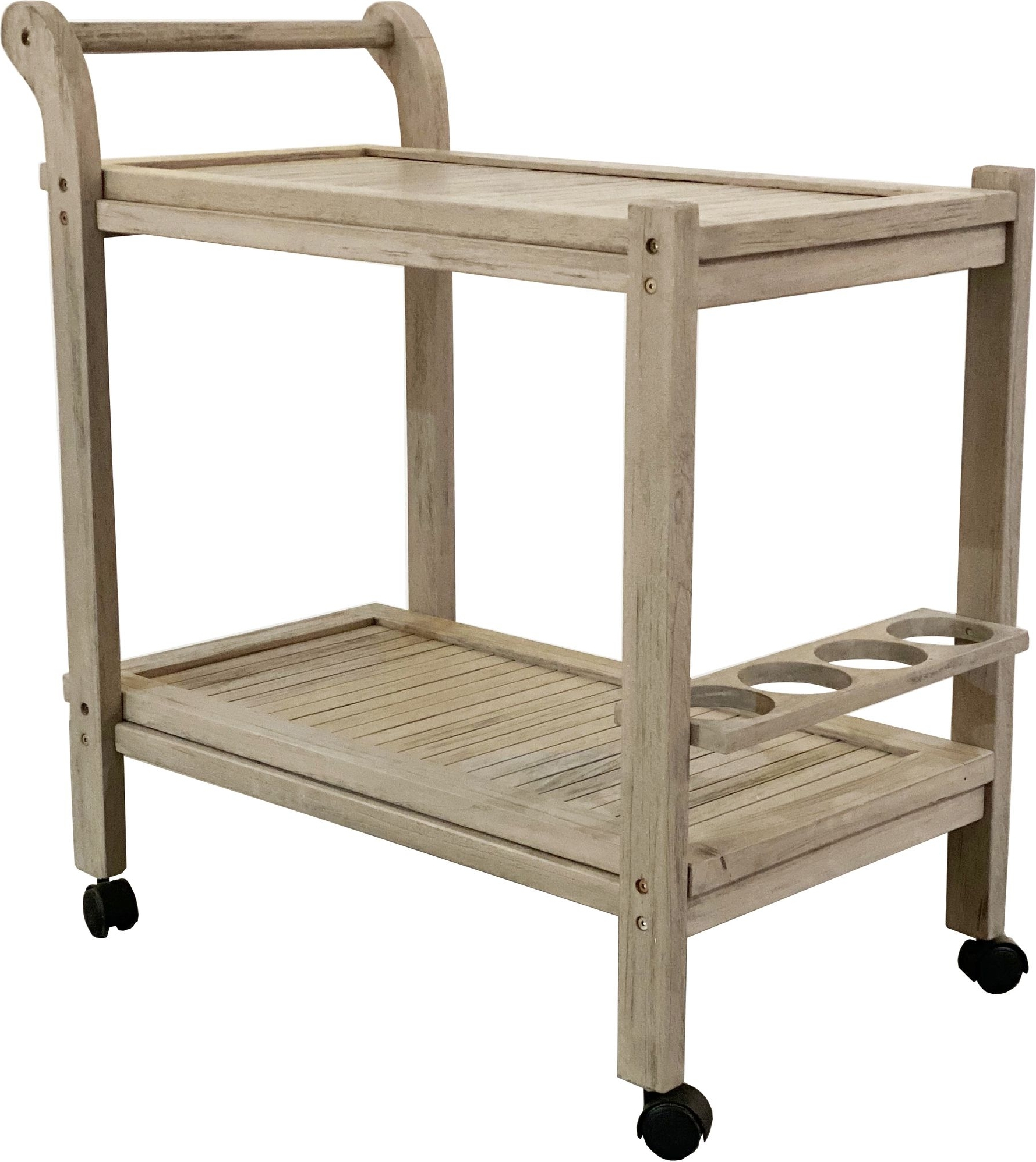 Teaktræ er et fremragende materiale til udendørs brug, da det naturligt modstår elementerne. For at bevare den varme, teakbrune nuance anbefaler vi at behandle og vedligeholde vognen med teakolie. Teakolie beskytter overfladen mod fugt og snavs, hvilket forlænger møblets levetid.