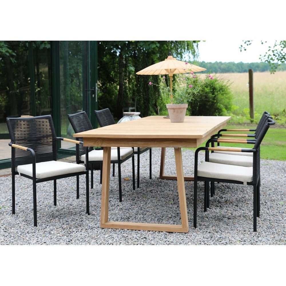 Dette elegante spisebord i massiv teaktræ er en del af den tidløse Saltö-serie og er perfekt til udendørs brug. Det anvendte teaktræ er af høj kvalitet og kommer fra bæredygtigt dyrkede teakskove. Med sin generøse størrelse er den perfekt til at samle familie og venner om bordet - der er plads til op til 8 personer.