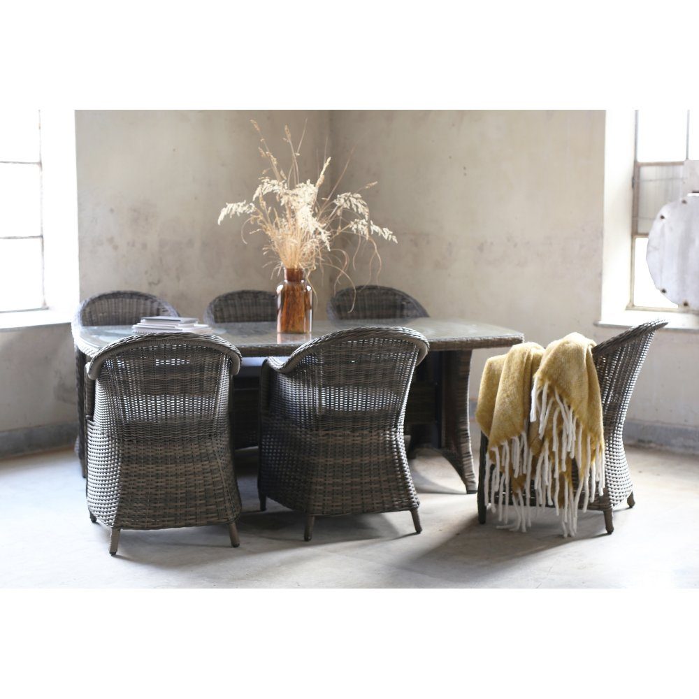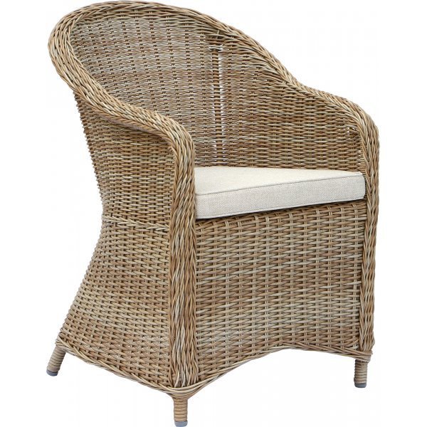 Spisebordssæt til terrassen/udepladsen. Sienna-spisebord i naturfarvet rattan og 6 matchende Mercury-lænestole. Et spisebordssæt i harmoni, hvor møblerne passer godt sammen sammen og skaber en helhed, der er svær at overgå.