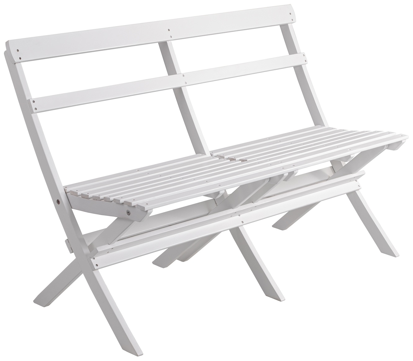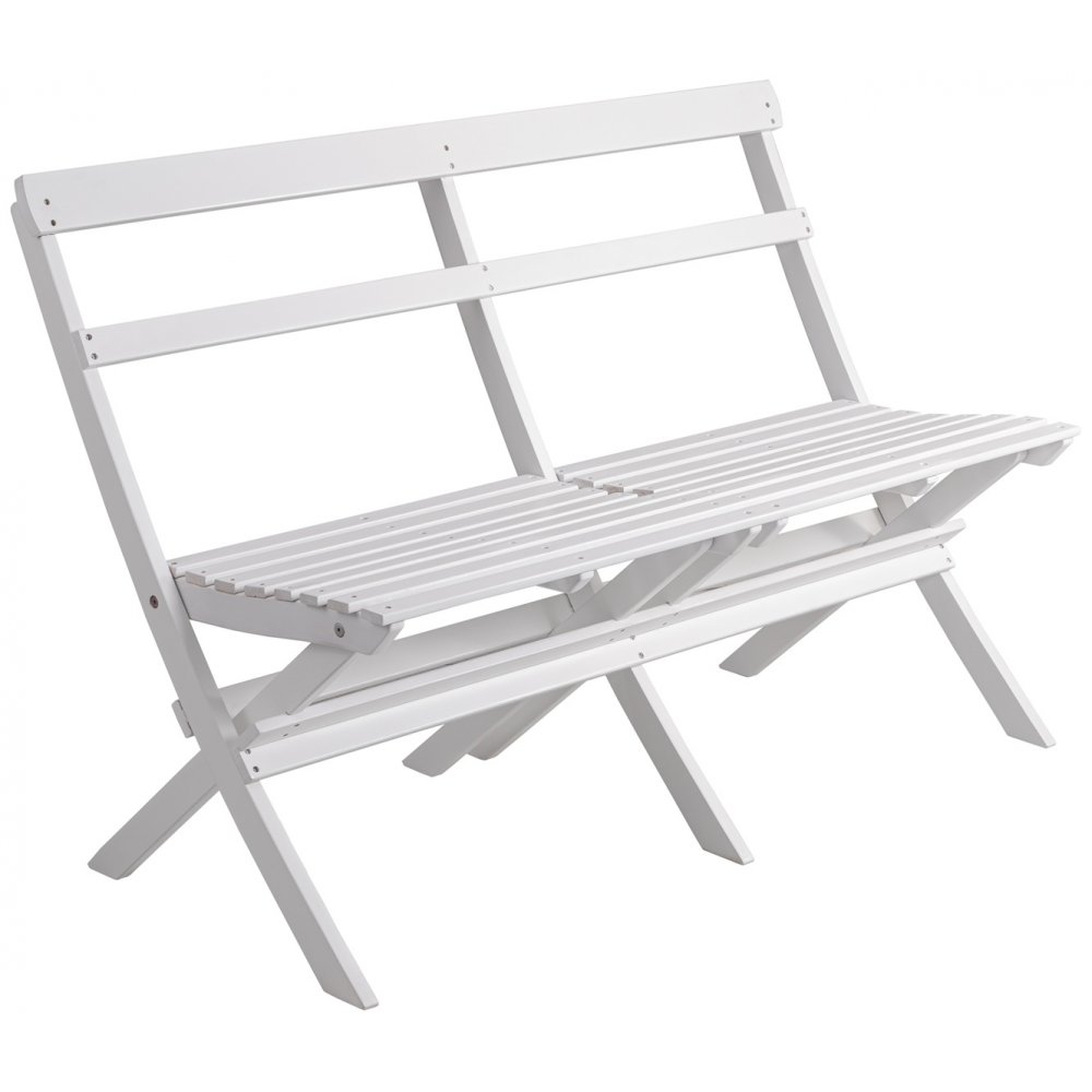 Klassisk spisegruppe i hvidglaseret træ til haven. Sættet er komplet med sofa, 2 stole og bord. En udegruppe, der falder godt ind i de fleste haver.