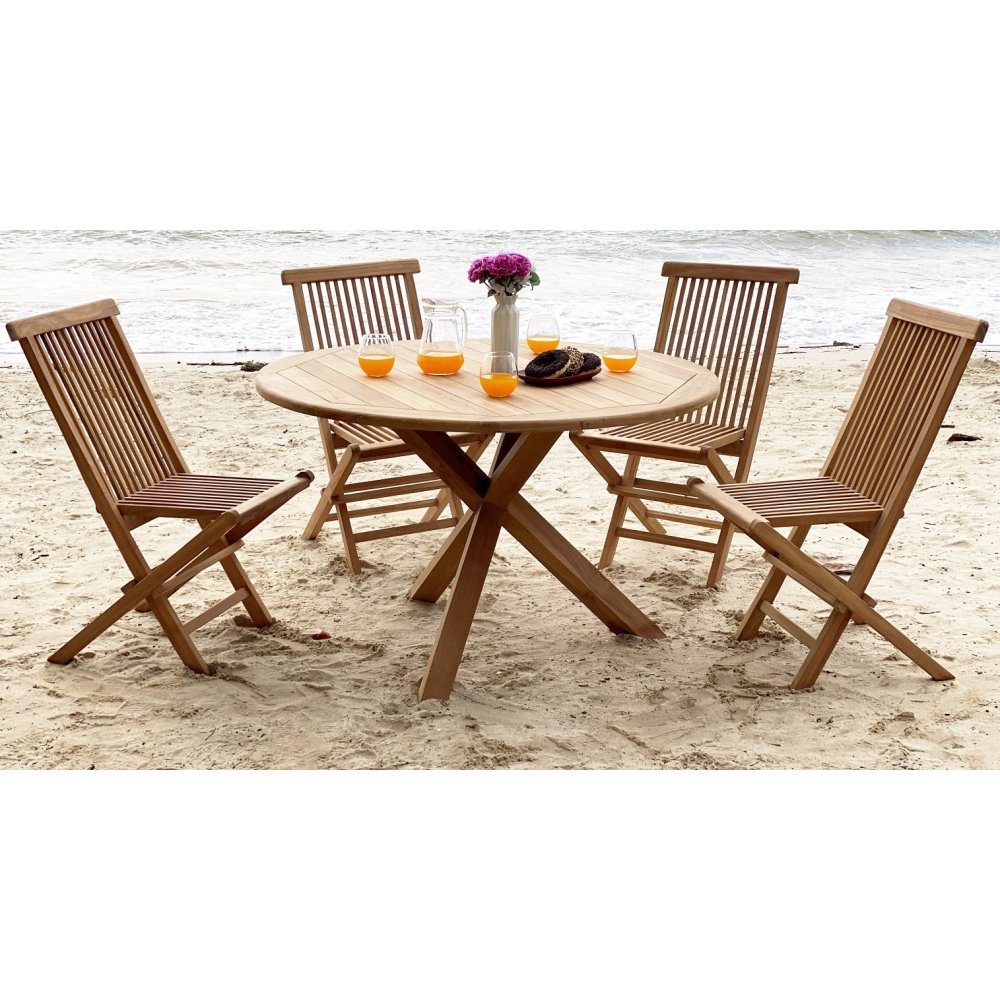 Den tidløse spisegruppe fra Saltö-serien kombinerer elegance og funktionalitet og er det perfekte valg til udendørs brug. Gruppen består af et rummeligt spisebord med 4 tilhørende stole. Produkterne i gruppen er fremstillet af massivt teaktræ af høj kvalitet. Med sit klassiske design og slidstærke materialer passer spisegruppen lige så godt på terrassen som i haven.