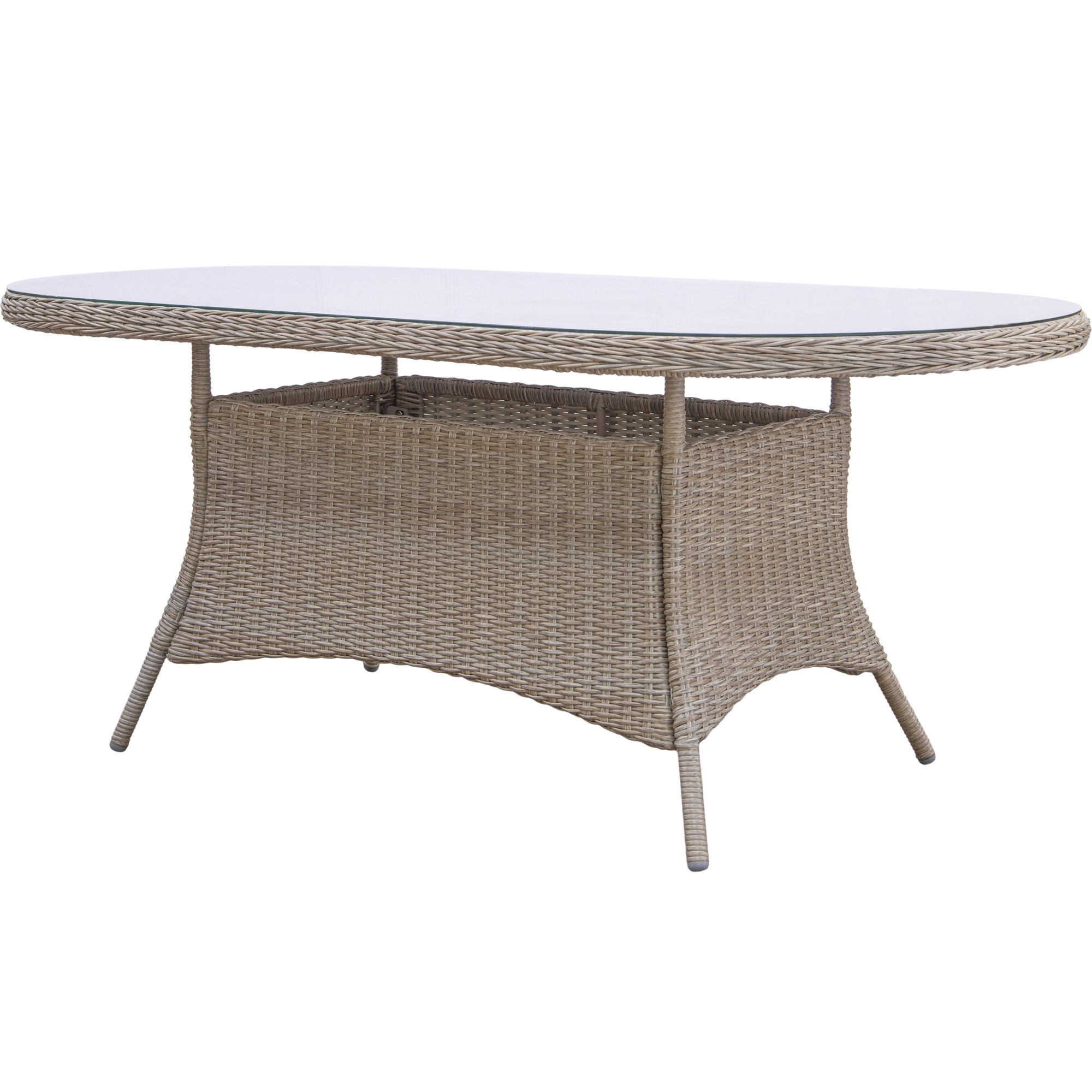 Skab et hyggeligt sted til lange måltider og afslapning udendørs med dette spisesæt i naturfarvet syntetisk rotting. Bordet fra Menton-serien har en bordplade af hærdet glas, der giver en rengøringsvenlig overflade med plads til seks personer. De tilhørende Mercury-lænestole har et klassisk design med en buet ryg og polstret hvid hynde, der giver både støtte og komfort. Perfekt til både udestue og terrasse.