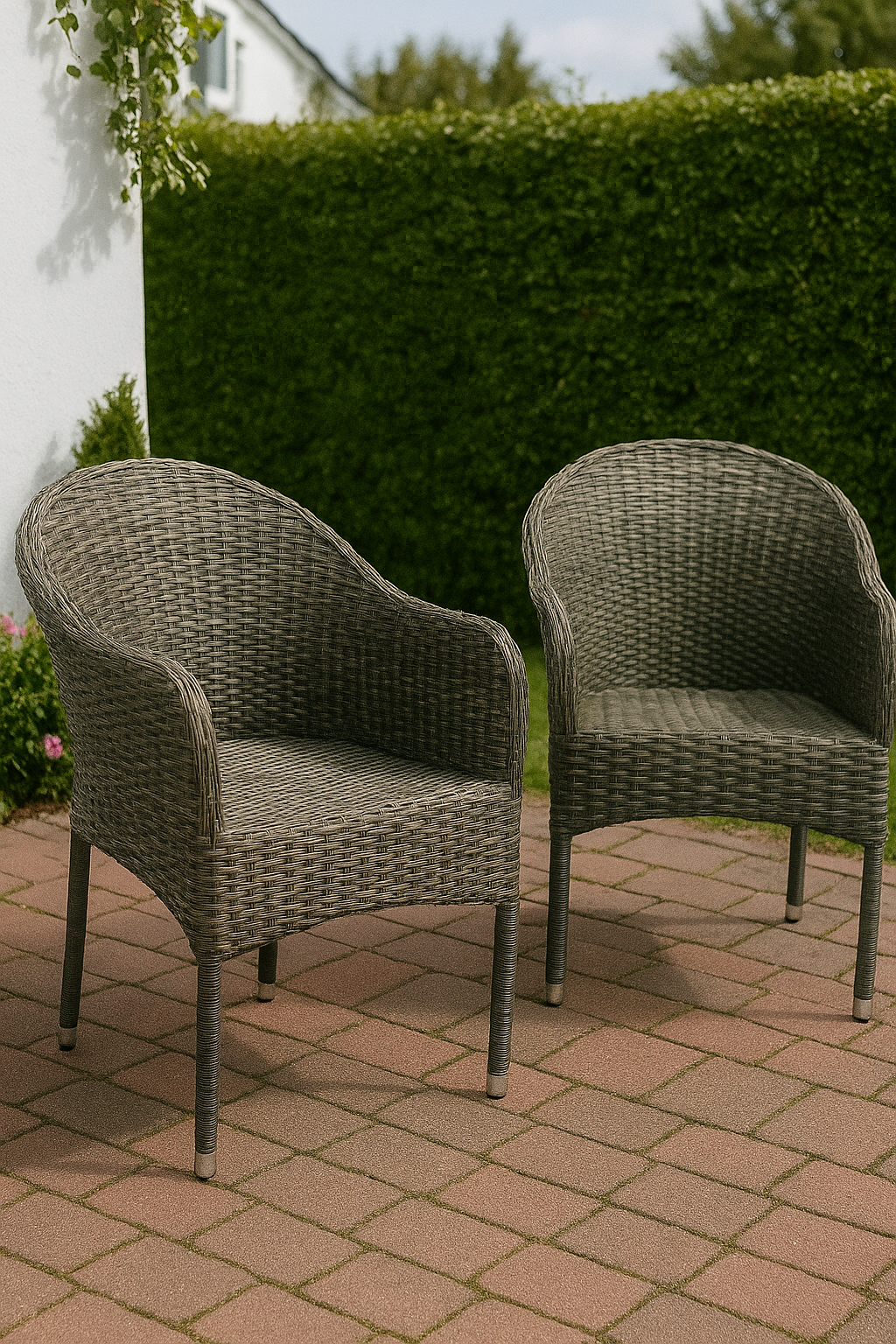 Stabelbar udendørsstol i grå rattan - Belle + Tekstilimprægnering til havemøbler