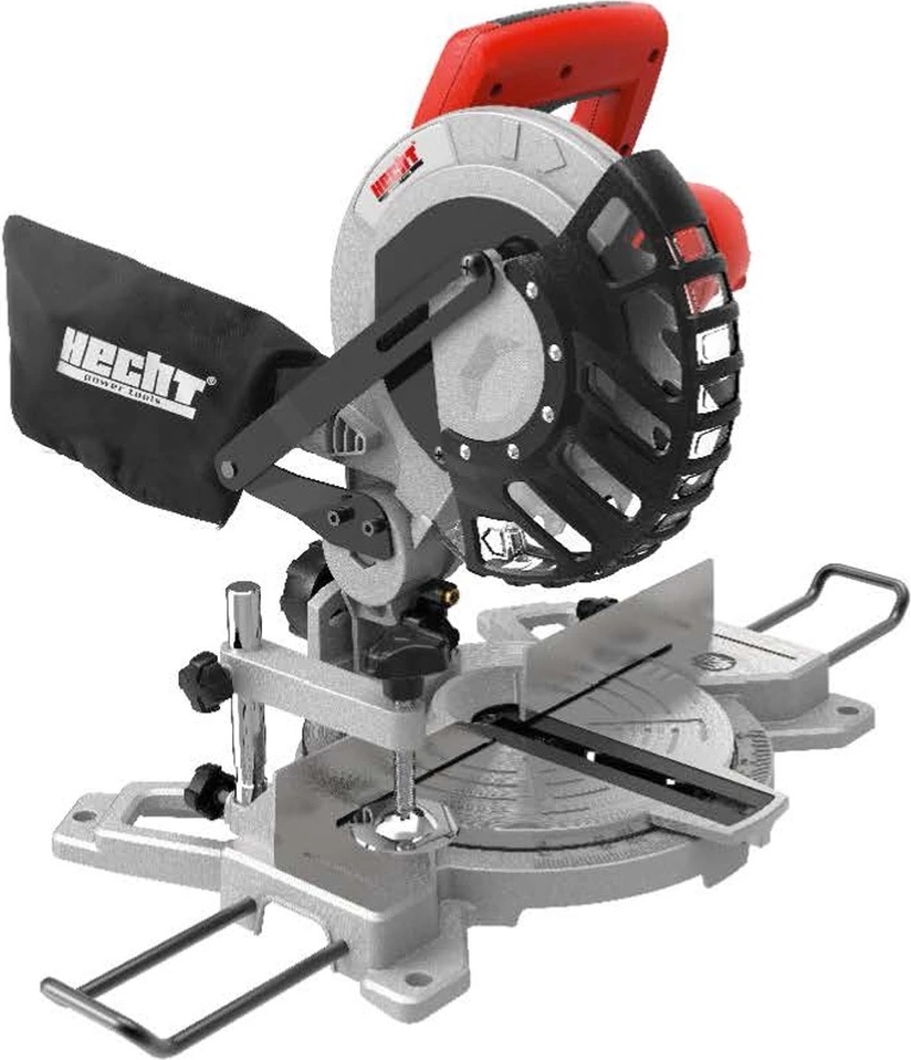 Elektrisk geringssav (1400 W) med laserpointer. Diameter af savhjul 210 mm. Geringssnit op til 45 grader (venstre).