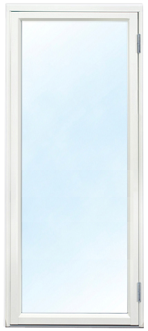 Fuldglaseret aluminiumsbeklædt vinduesdør i 3-rude med særdeles gode isoleringsegenskaber (2 styk lavemissionsglas (LE)). Sikkerhedsglas både ude og inde.